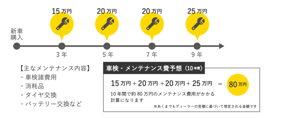 車検・メンテナンス費用は10年間でおよそこれだけかかる計算になります。